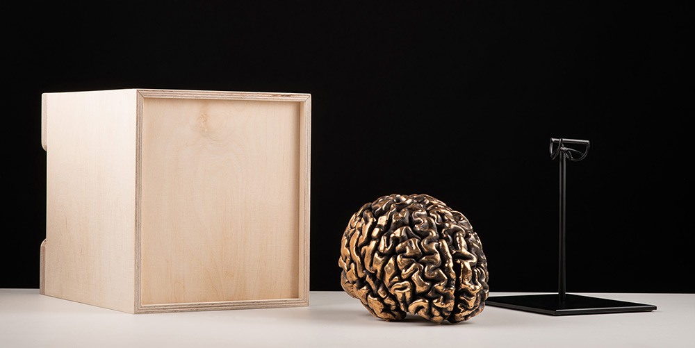 The brain defines a human being. It weighs approximately 1400 grams and it is estimated to contain up to 85 billion neurons. These neurons form an extremely complex network that eventually defines our personality, cognitive functions (e.g. memory, attention and problem solving) and emotions. This sculpture of your own brain makes it possible to literally hold the substance that defines yourself in your own hands.